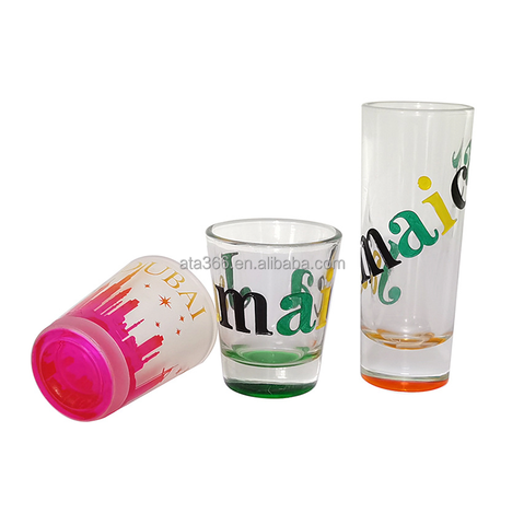 1ขวดแก้ว2ออนซ์แก้วช็อตแบบสีระเหิดปรับแต่งได้ถ้วยแก้วสำหรับของขวัญโปรโมชั่นงานแต่งงาน